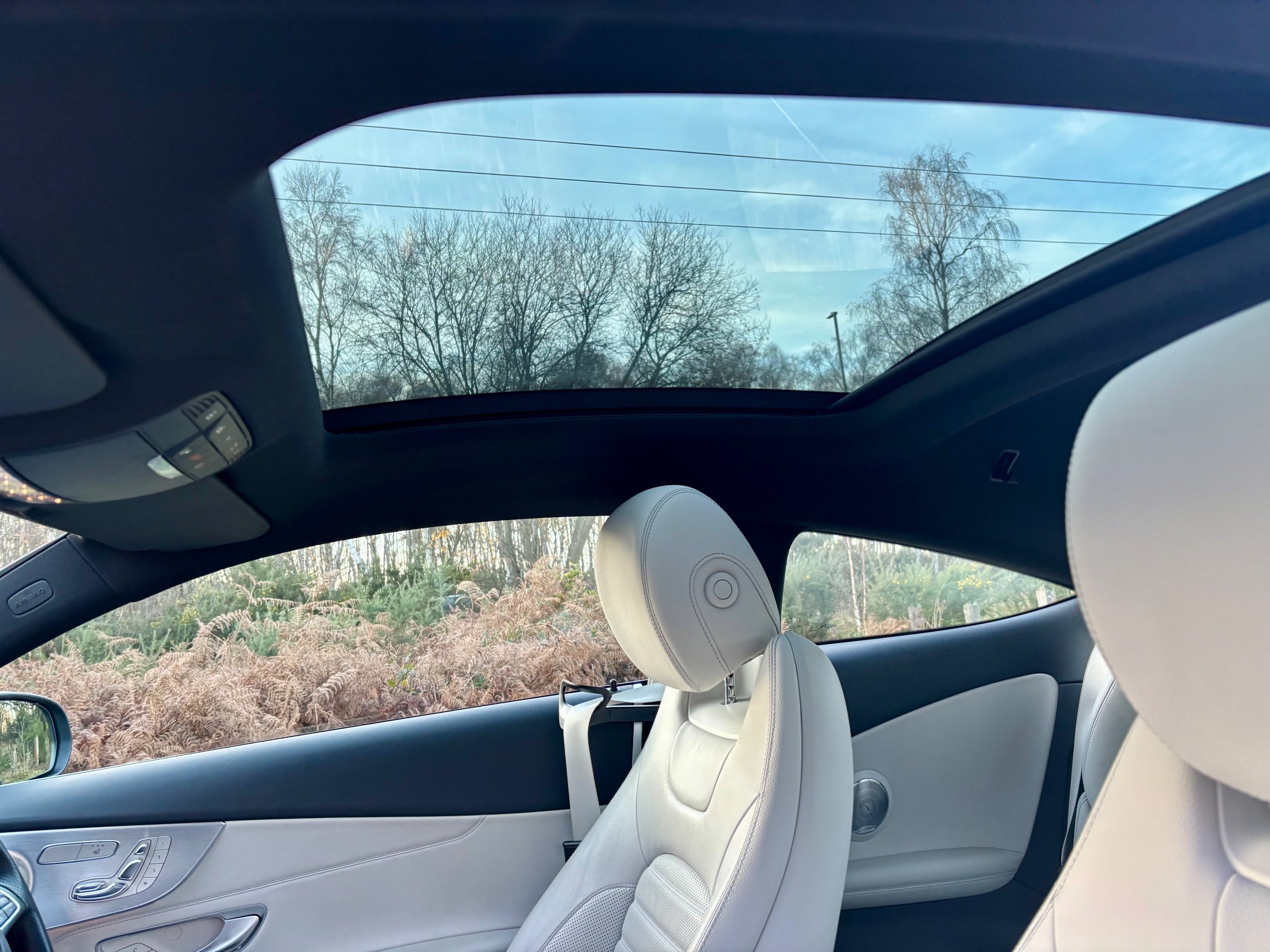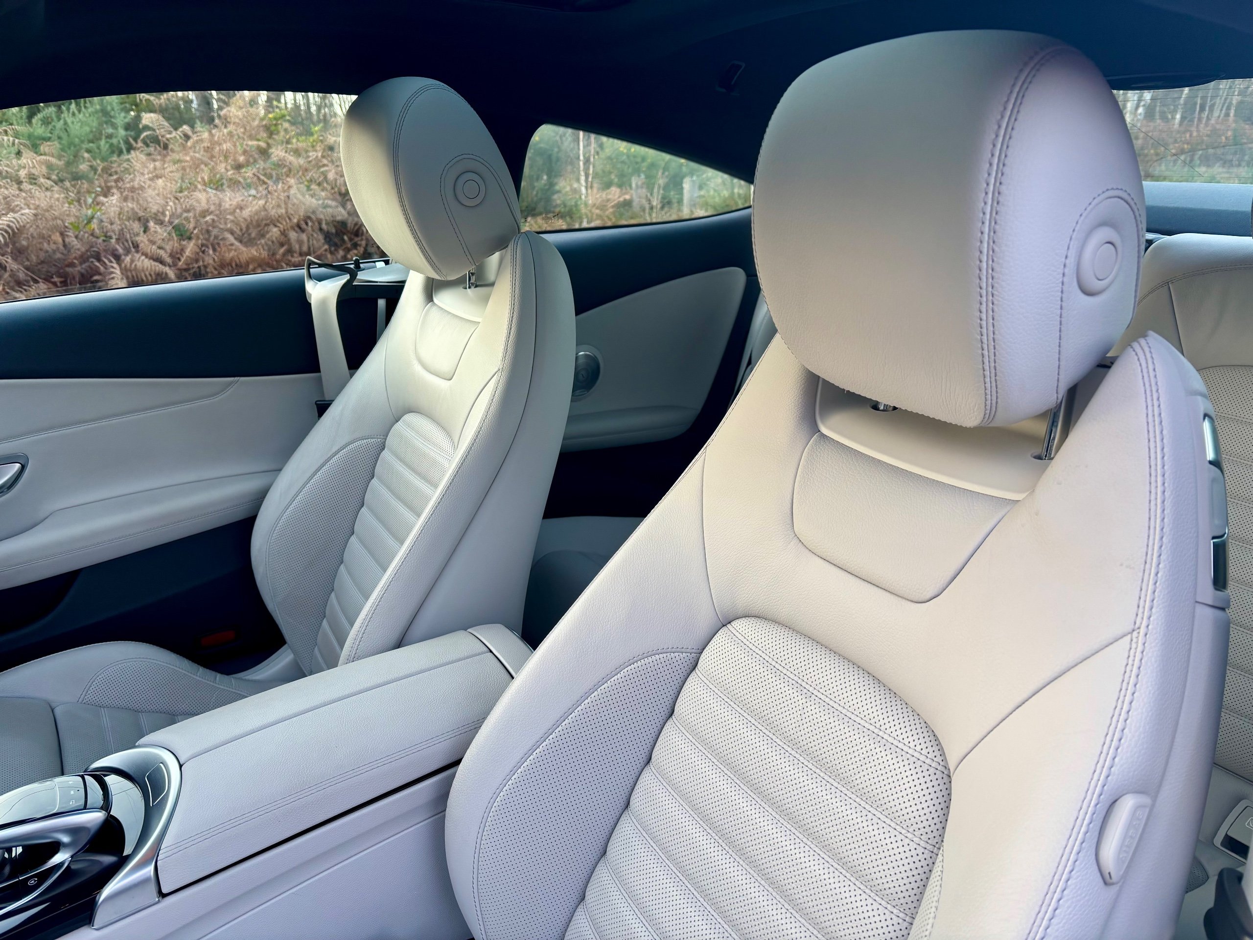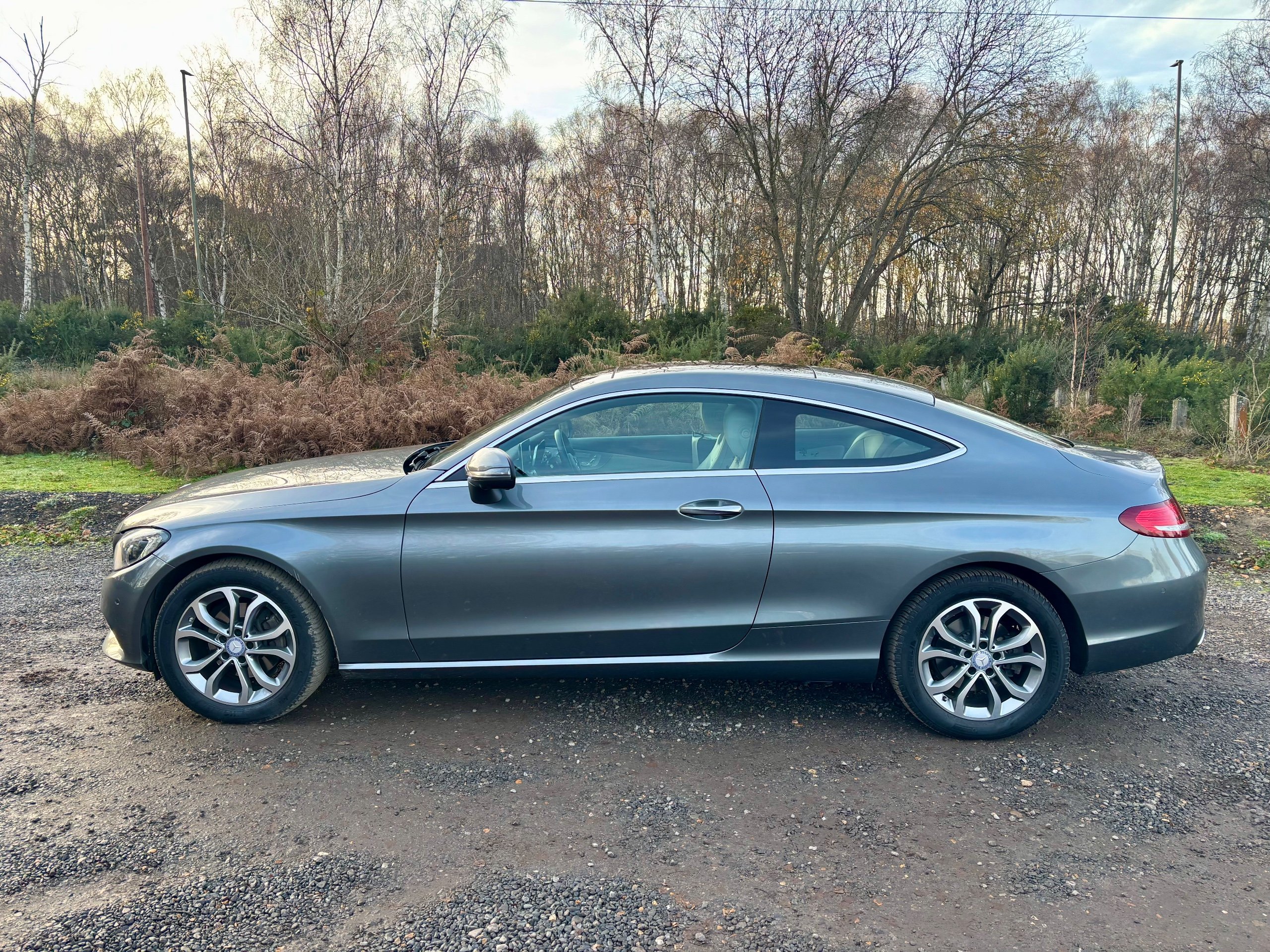 We are pleased to offer this stunning, Mercedes Benz C200 Sport Premium Plus 2.0 Automatic Coupe. It is finished in metallic selenite grey complemented with cream leather upholstery. This vehicle is supplied with Mercedes/ Specialist service history, MOT until 17/11/2026 and two keys. We offer a standard 6 month warranty which can be upgraded to a 24 month comprehensive warranty for only £495+VAT. Specification includes: Panoramic sliding sunroof, head up display, comand satellite navigation, electric heated front seats with memory package, park assist, bluetooth phone preparation, 360 camera, active brake assist system, cruise control, 9 speed automatic transmission, airmatic suspension, electric folding door mirrors, DAB radio with burmester surround system, air conditioning, electric windows, ambient lighting, LED headlights, automatic bootlid opening/closing feature, keyless go, 17" alloy wheels, folding rear seats, remote central door locking, alarm system, 4 matic all wheel drive, Eco stop/start system, AMG door sill panels, dual cup holder, multi function steering wheel. HPI cleared. Euro 6 technology. ULEZ COMPLIANT. NO ADDITIONAL ADMIN FEES. Part exchange welcome. Please read our 5 star Autotrader reviews. WE OPERATE BY APPOINTMENT ONLY. For further information or to arrange an appointment please call us on 07884367167.