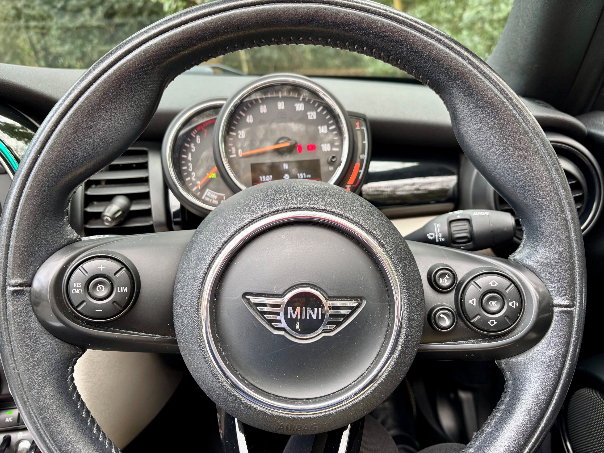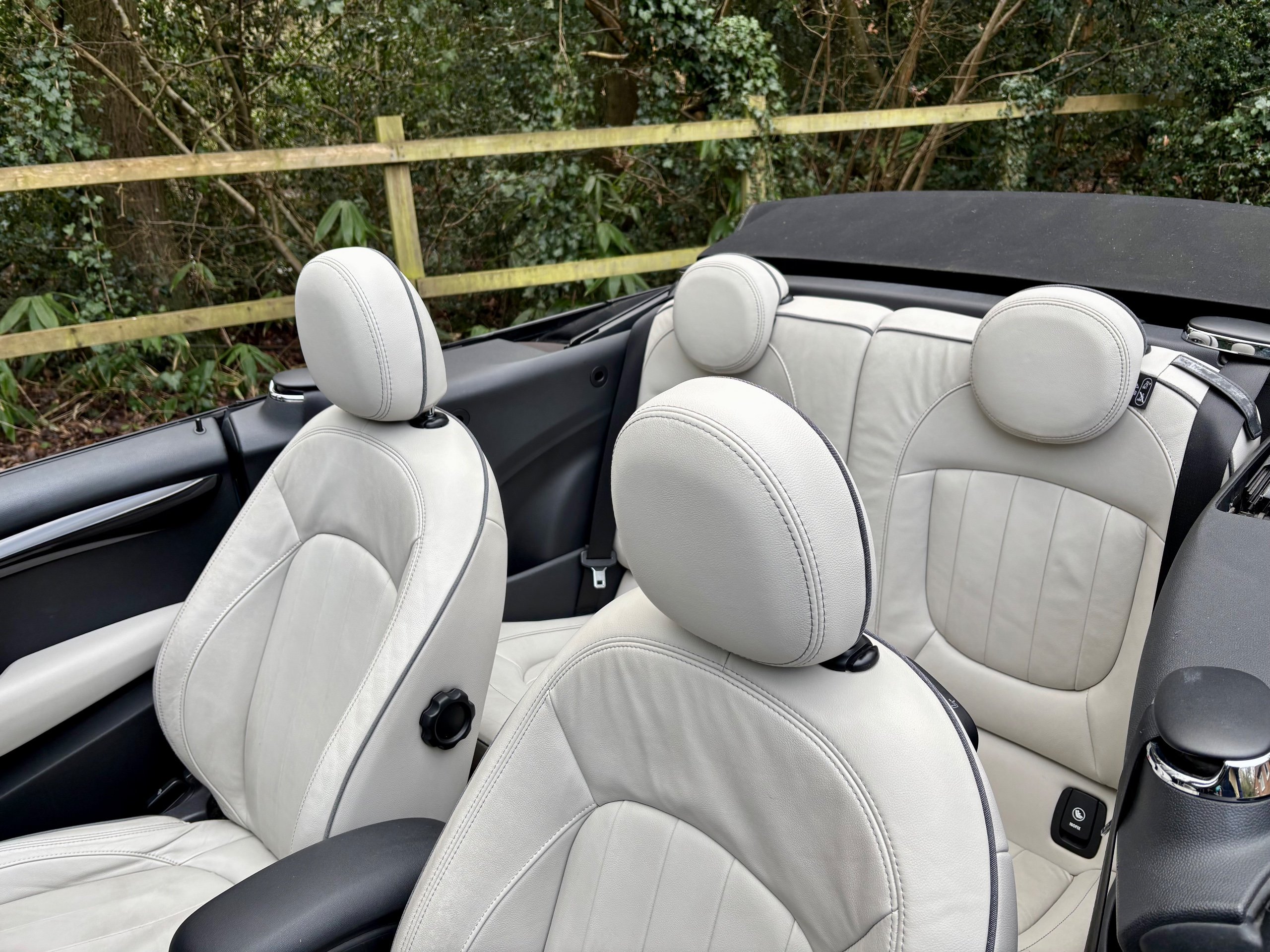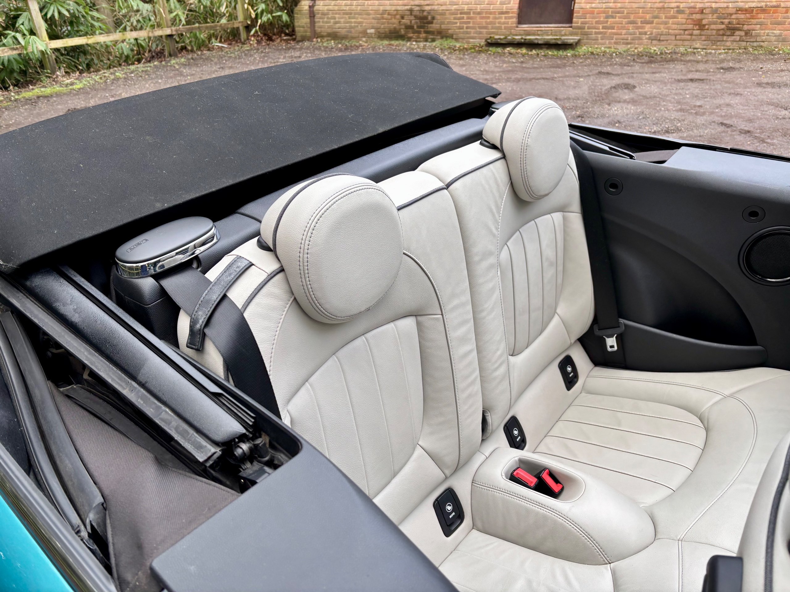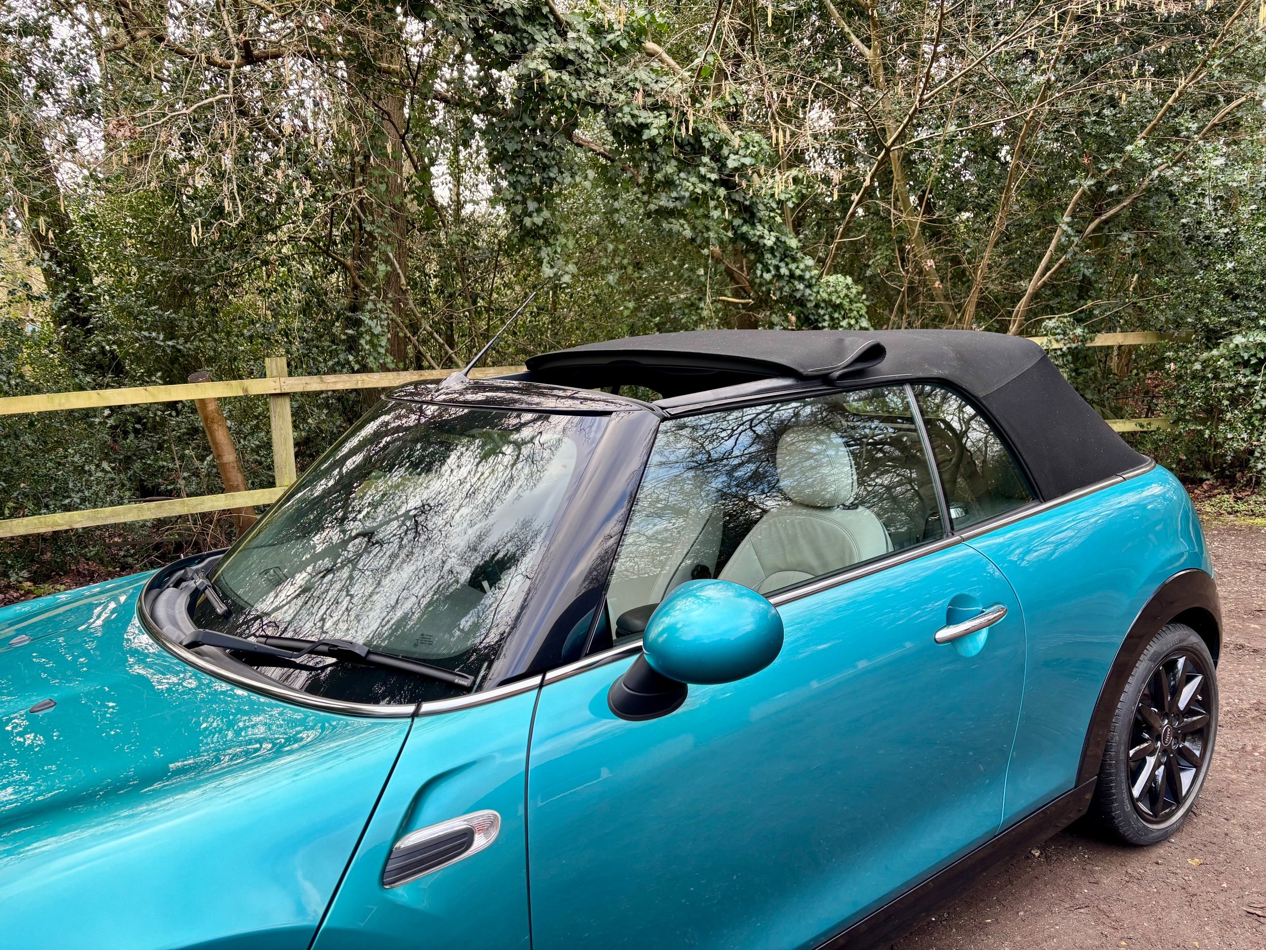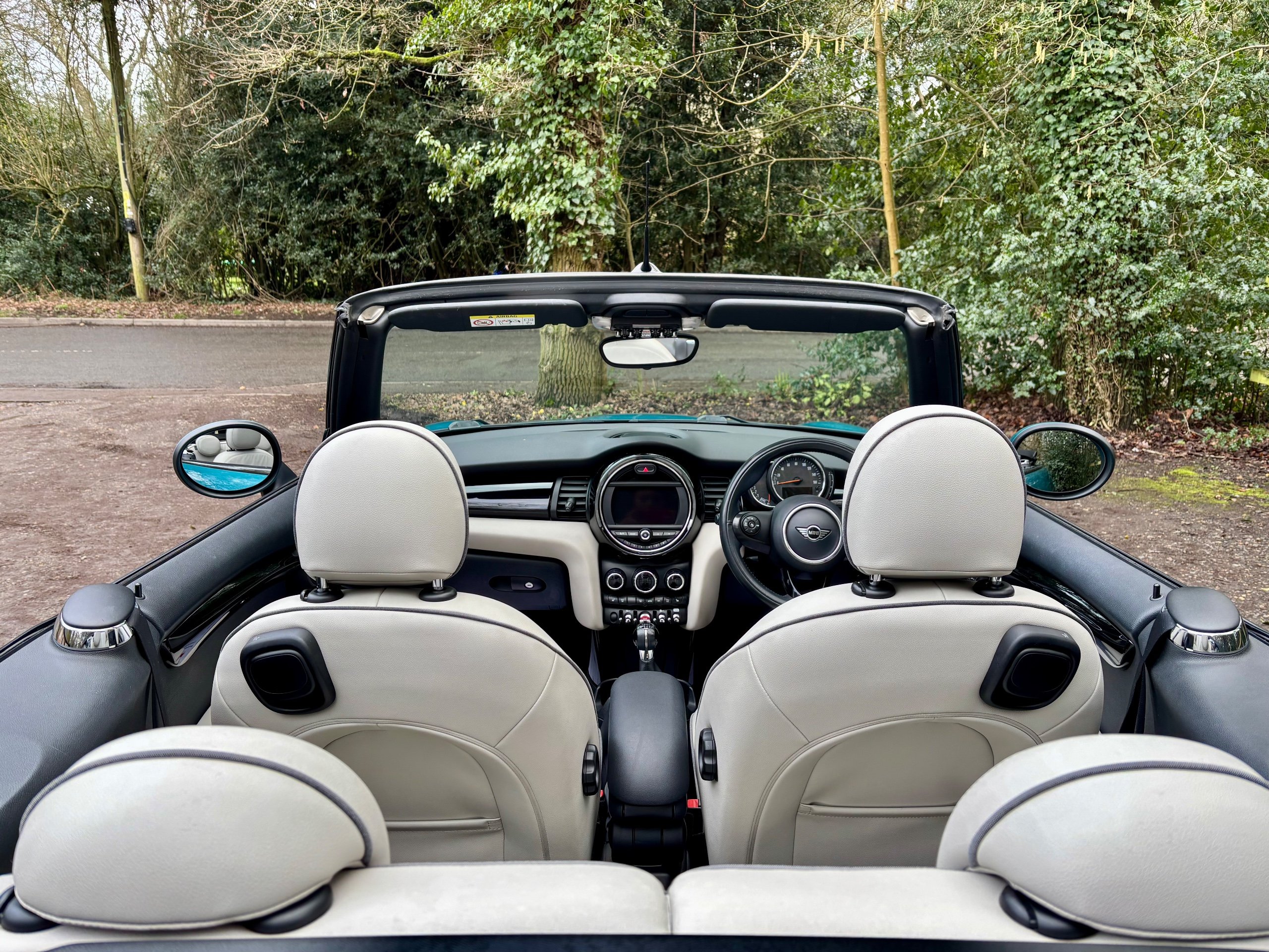 We are pleased to offer this stunning, Mini Cooper 1.5 convertible. It is finished in metallic Carribean - aqua complemented with satellite - grey leather upholstery. This vehicle is supplied with documented service history, MOT until 29/06/2026 and two keys. We offer a standard 6 month warranty which can be upgraded to a 24 month comprehensive warranty for only £495+VAT. Specification includes: Heated front sports seats, cruise control with brake function, rear parking sensors, air conditioning, bluetooth phone preparation, Mini excitement package, electric folding roof, electric windows, remote central door locking, front armrest, isofix system, light package, LED fog lights, chilli pack, LED headlights, DAB radio, sports leather steering wheel, 6 speed manual transmission, 17" pedal spoke alloy wheels, multi function steering wheel. Eco stop/start system. HPI cleared. Euro 6 technology. ULEZ COMPLIANT. NO ADDITIONAL ADMIN FEES. Part exchange welcome. Please read our 5 star Autotrader reviews. WE OPERATE BY APPOINTMENT ONLY. For further information or to arrange an appointment please call us on 07884367167.